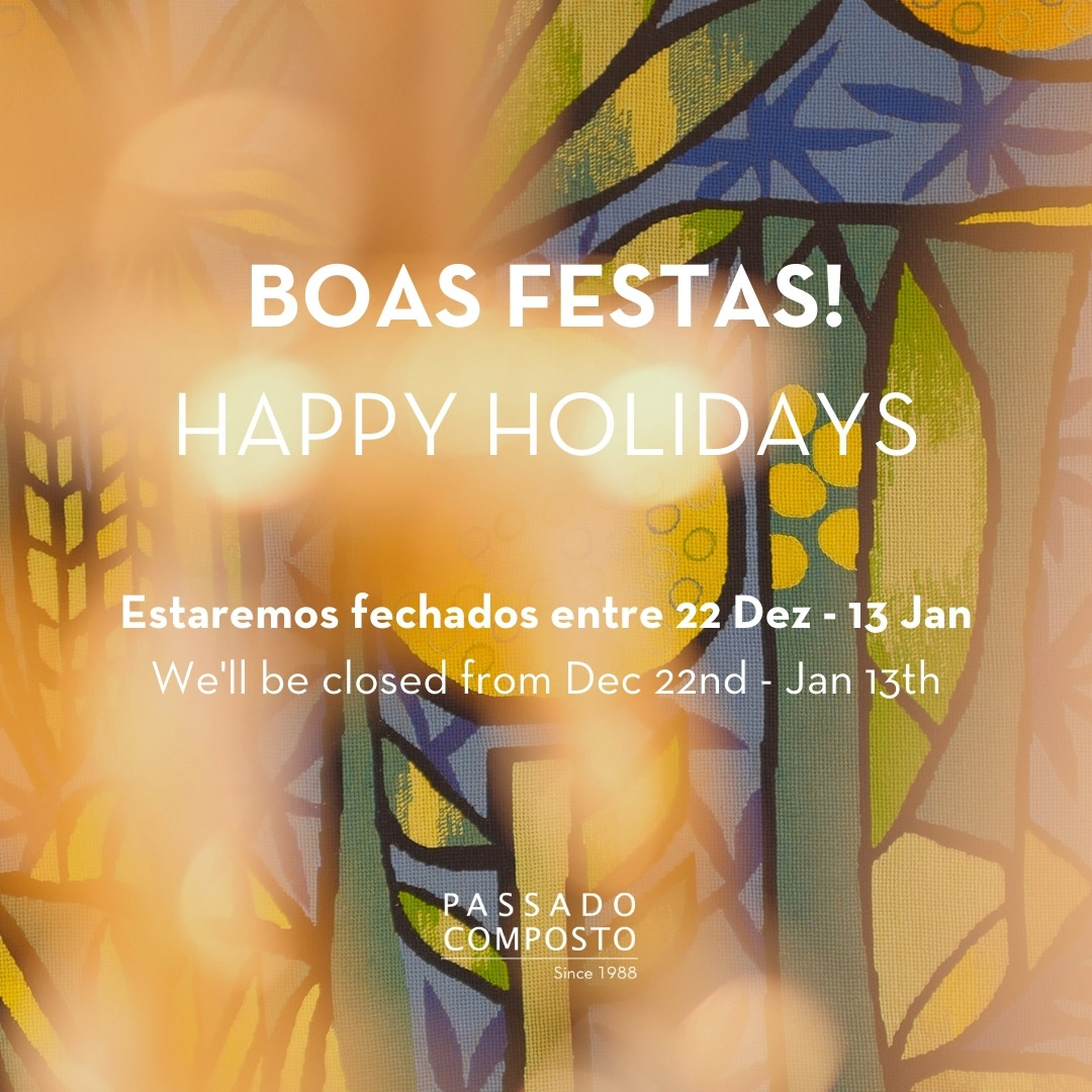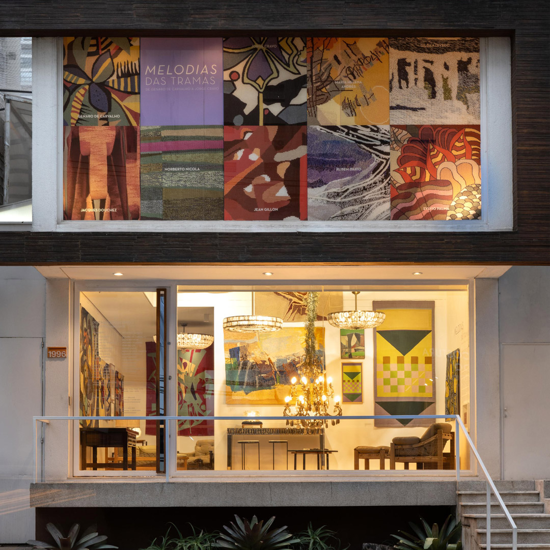Apresentamos, na vitrine da galeria, sob nossa curadoria, a partir de novembro de 2025, uma coleção do acervo de obras de arte em pintura e tapeçaria modernas, criada por seis artistas renomados participantes das "Bienais de São Paulo", entre 1951 e 1994: Genaro de Carvalho (2), Jacques Douchez (11), Norberto Nicola (7), Jean Gillon (1), Gilda Azevedo (1) e Maria Helena Andrés (10), indicados com o número de suas participações de destaque. Em diálogo com essas obras, a iluminação da vitrine é composta por "Jóias em Lustres": luminárias e arandelas concebidas em cristal de rocha - criações preciosas e exclusivas de Cida Santana, designer e fundadora da Passado Composto.