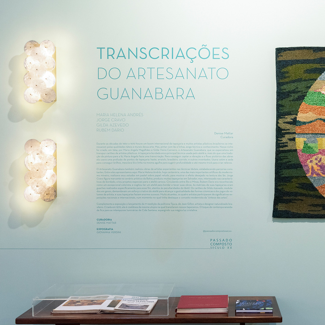 A Galeria Passado Composto Século XX, dedicada à pesquisa e ao resgate da memória da tapeçaria artística brasileira, dá continuidade a esse trabalho com esta mostra, valorizando os criadores que produziram suas obras no atelier ARTESANATO GUANABARA, reconhecido por seu trabalho digno de elogios tanto no setor artístico têxtil nacional quanto internacional.